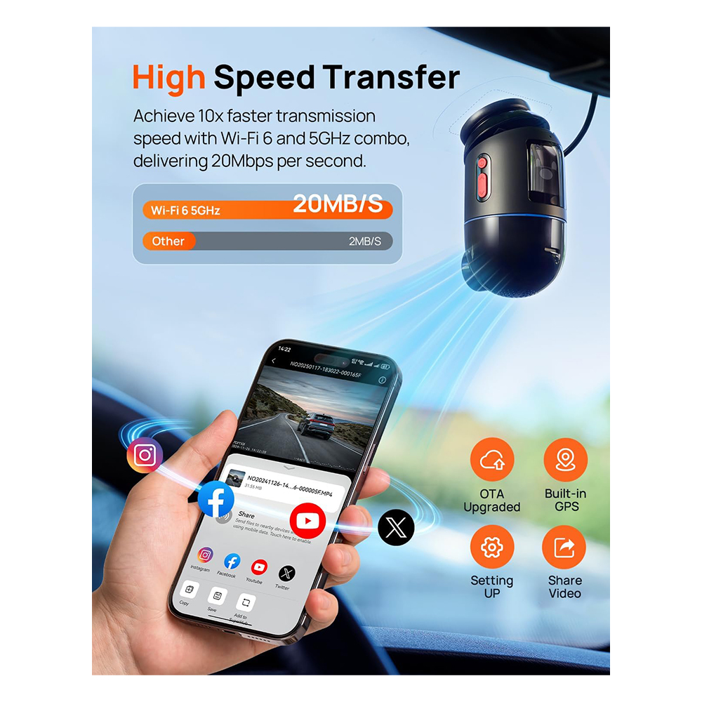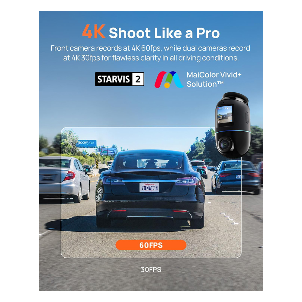 70mai X800 4K Dash Cam Front and Rear, Dual STARVIS 2 Car Camera with 4G LTE Support, 5Ghz Wi-Fi 6, GPS, HDR, Parking Mode, Support 512GB Max