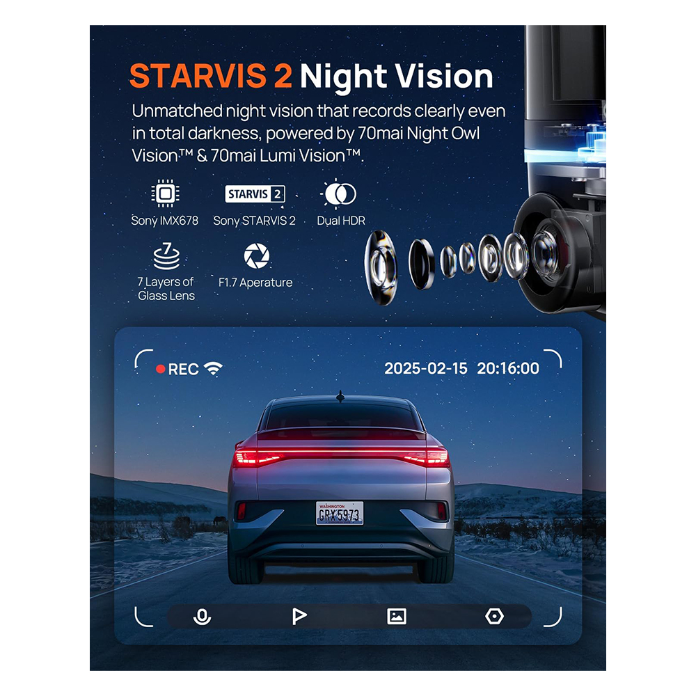 【70mai Dash Cam 4K Omni with CPL】 Front and Rear Car Camera with Sony IMX678 Sensor | STARVIS 2 Night Vision | 4G LTE | AI Motion Diction | ADAS | Wi-Fi 6 | Parking Monitor | Voice Control (4K Omni X800)|