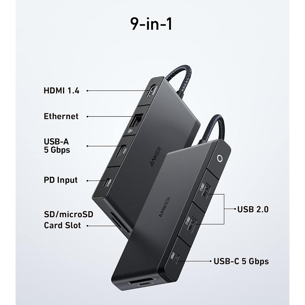 Anker 552 USB-C Hub (9-in-1, 4K HDMI) | 100W Power Delivery | 4K HDMI @ 30Hz | 4 USB-C and USB-A Data Ports | Ethernet and SD/MicroSD Card Slots for MacBook Laptops, HP, Dell Laptops, and More|