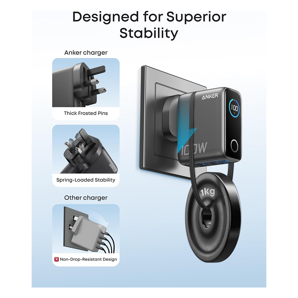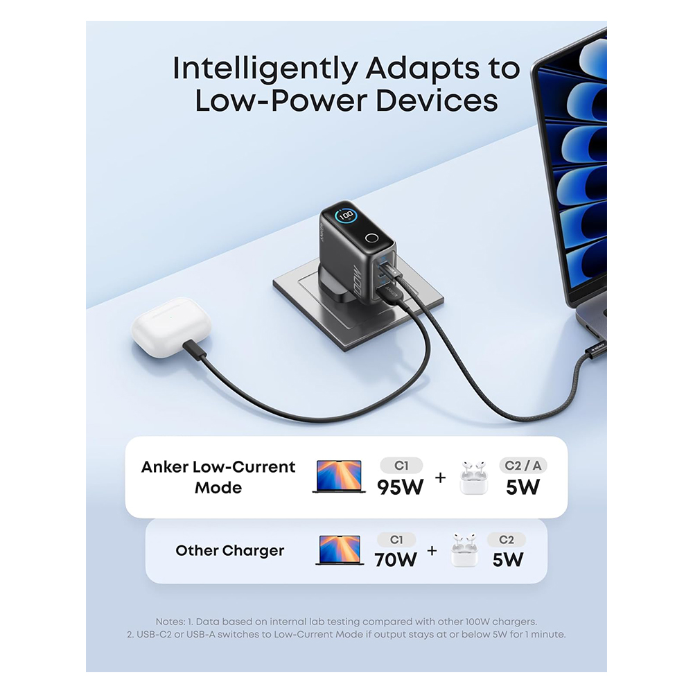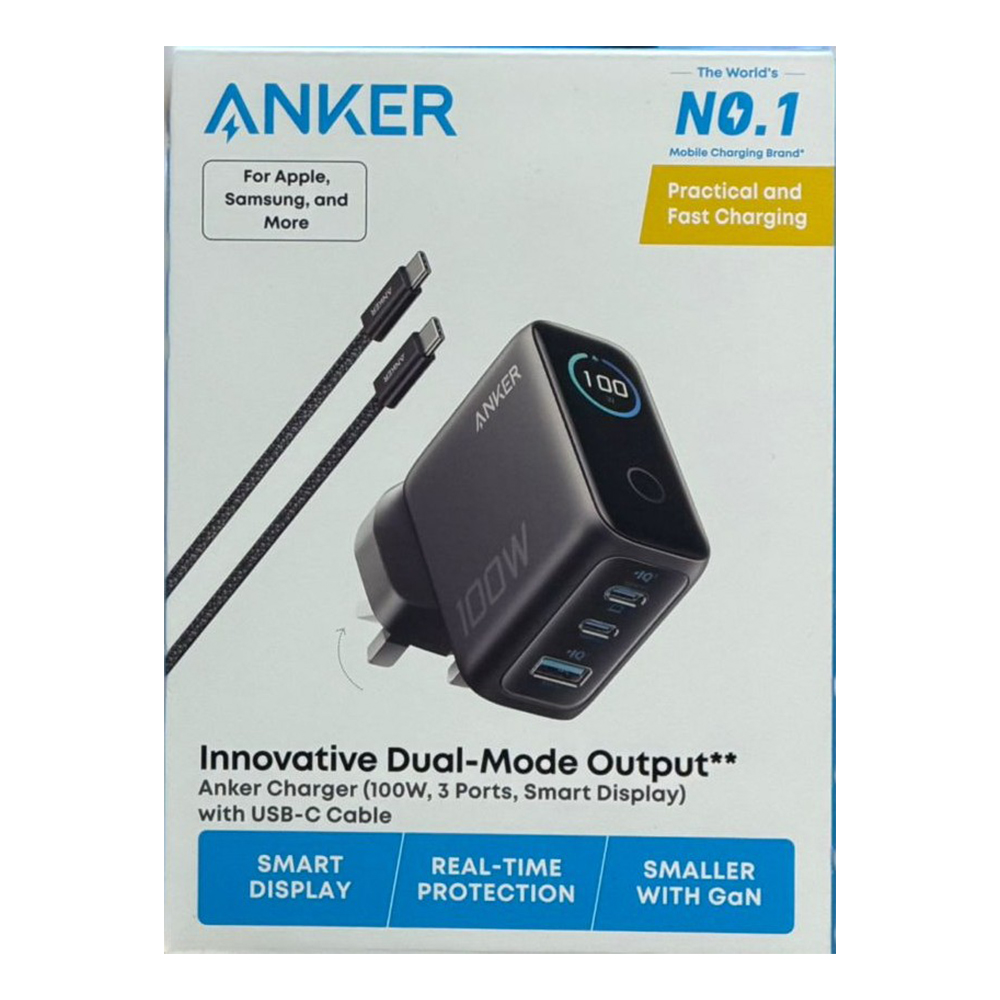 Anker Charger, 100W Max USB C Charger, 3-Port GaN and Ultra-Compact Wall Adapter, Smart Display and Touch Control, For MacBook, iPad, iPhone 17/16/15 Series, and More at desertcart UK. Review: Excellent charger! – Brilliant charger! Solidly built and compact. Kicks out up to 100w so I can charge laptop, tablet/phone and smartwatch simultaneously at full power and it barely gets warm. The only charger you’ll ever need to take on holiday. I’ve also got a couple at home and these have replaced all my other usb chargers Review: Great Charger, Powerful, stable and travel friendly – Superb charger from Anker, Super Fast charging on all devices. Even quickly charged my daystate rifle which is notoriously difficult with normal chargers. Good build quality and neat display.