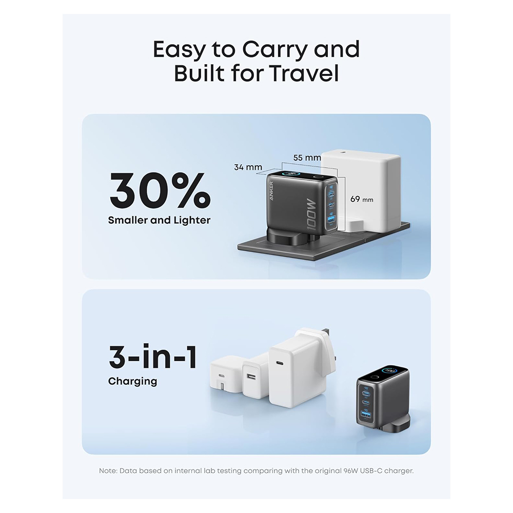 Anker Charger | 100W Max USB C Charger | 3-Port GaN and Ultra-Compact Wall Adapter | Smart Display and Touch Control | For MacBook, iPad, iPhone & More|