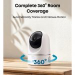 Home Security Camera for Indoor Surveillance, Human and Pet AI, Works with Voice Assistants, Motion Tracking, Night Vision.