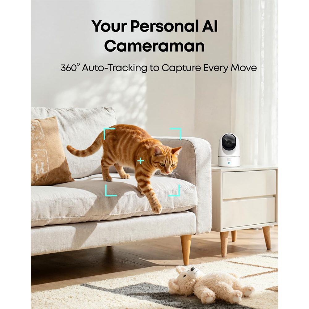 Anker Eufy Security 2K Indoor Cam Pan & Tilt | Home Security Indoor Camera | Human and Pet AI | Works with Voice Assistants | Motion Tracking | Night Vision | Micro-SD Card Required | Home Base Not Required |