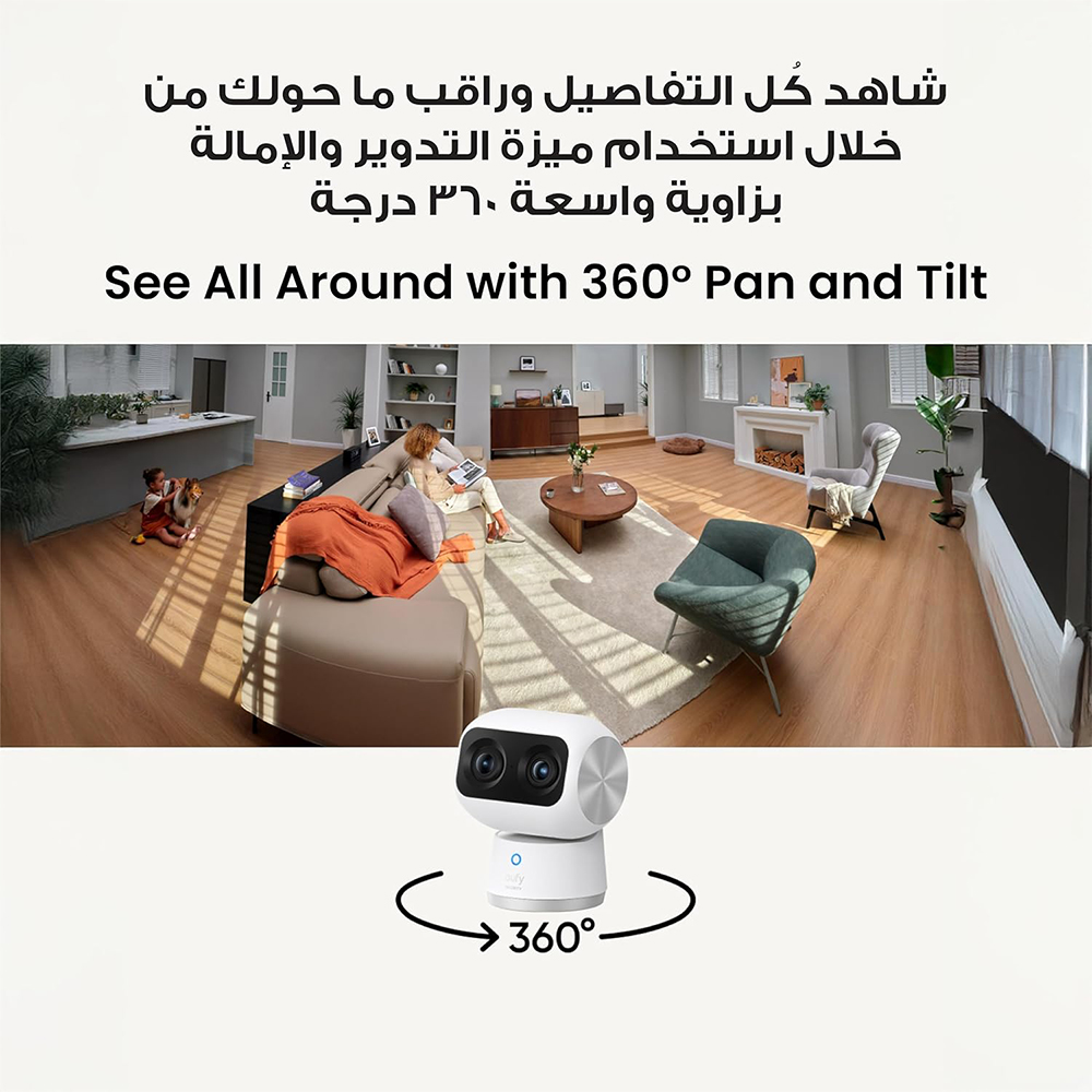 | Included components | โโ1 X eufy Security Indoor Cam S350 Dual Cameras 4K UHD Indoor Security Camera with 8ร Zoom and 360ยฐ PTZ, Ideal for Baby Monitor/Pet Camera/Dog Camera/Home Security, Human/Pet AI, Dual-Band Wi-Fi 6 |