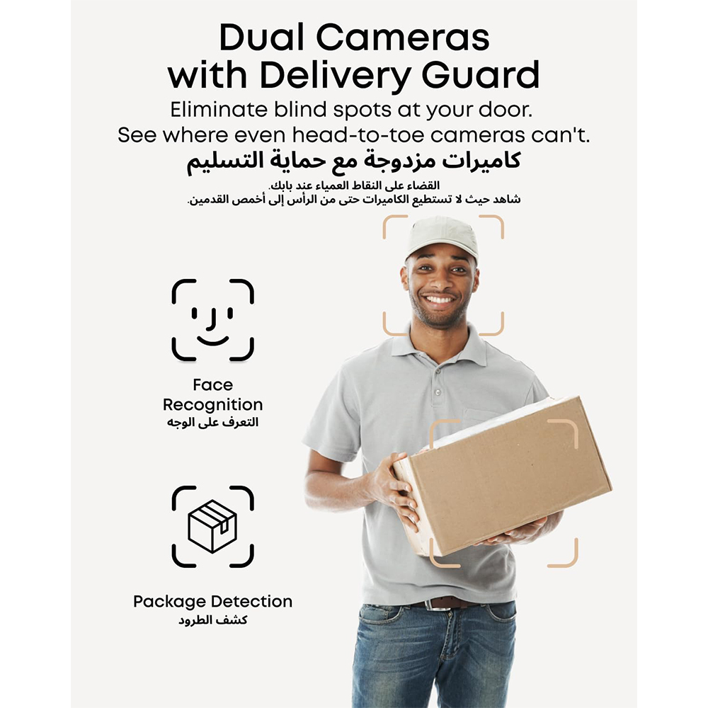 The Eufy E340 is equipped with dual cameras, providing a comprehensive view of your doorstep. The main camera offers clear visuals, while the secondary camera focuses on the ground, ensuring you donโt miss any activity, including package deliveries.