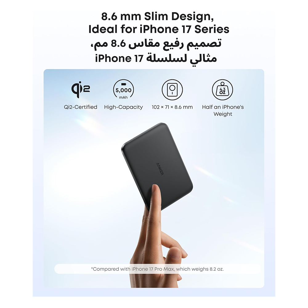 Anker Nano Power Bank Ultra-Slim 5,000mAh Magnetic Battery Pack | Qi2 Certified 15W Max Ultra-Fast MagSafe-Compatible Portable Charger | PD 20W | Ergonomic Design|