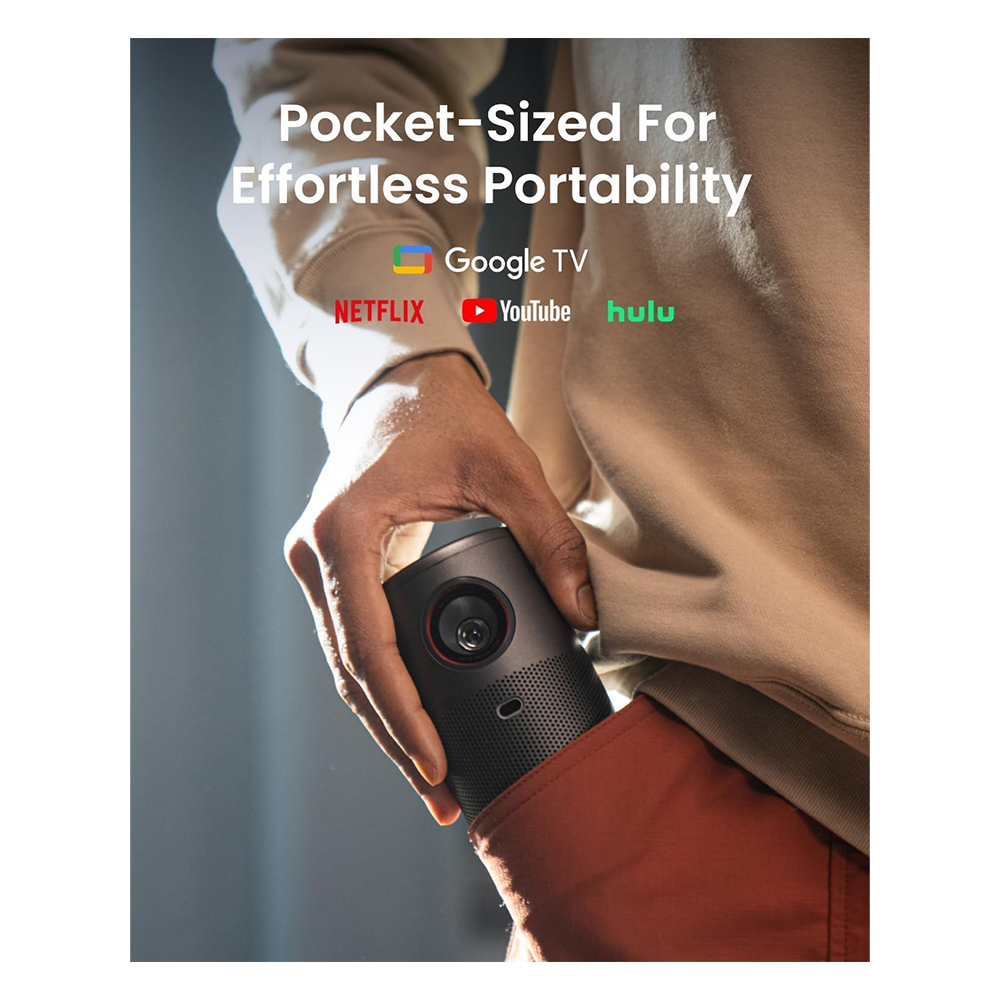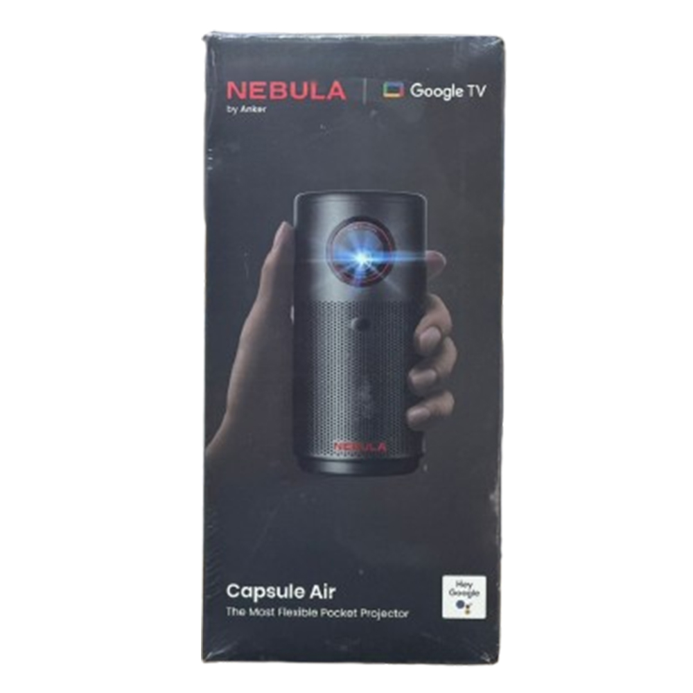Anker SoundCore NEBULA Capsule Air Ultra-Portable Google TV Mini Projector | Officially Licensed Netflix | 720p Smart Mini Projector with Wi-Fi | 2-4 Hours of Playtime | 100-Inch Display | Dolby Digital | Ultra Portable for Any Space|