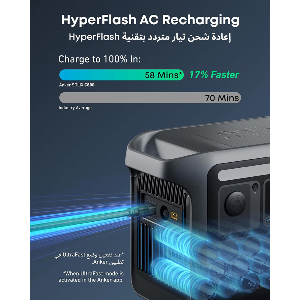 Anker SOLIX C800 Portable Power Station | 1200W (Peak 1600W) | Solar Generator | Full Charge in 58 Min | 768Wh LiFePO4 Battery for Outdoor Camping, RVs | Road Trip | Power Outages | Optional Solar Panel|