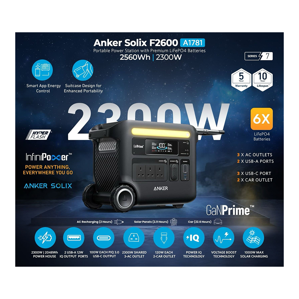 Anker SOLIX F2600 Portable Power Station | 2400W (Peak 3600W) | Solar Generator | GaNPrime Battery Generators for Home Use | 2560Wh LiFePO4 Power Station for Outdoor Camping | RVs Solar Panel Optional|