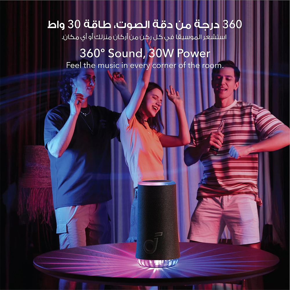 Anker Soundcore Glow Portable Speaker with 30W 360° Sound | Synchronized Radiant Light | 18H Playback | Customizable EQ and Light Show | and IP67 Waterproof|