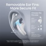 The semi-in-ear fit with detachable ear fins provides a secure, pressure-free experience, reducing pressure and heat build-up in the ear compared to traditional in-ear designs.