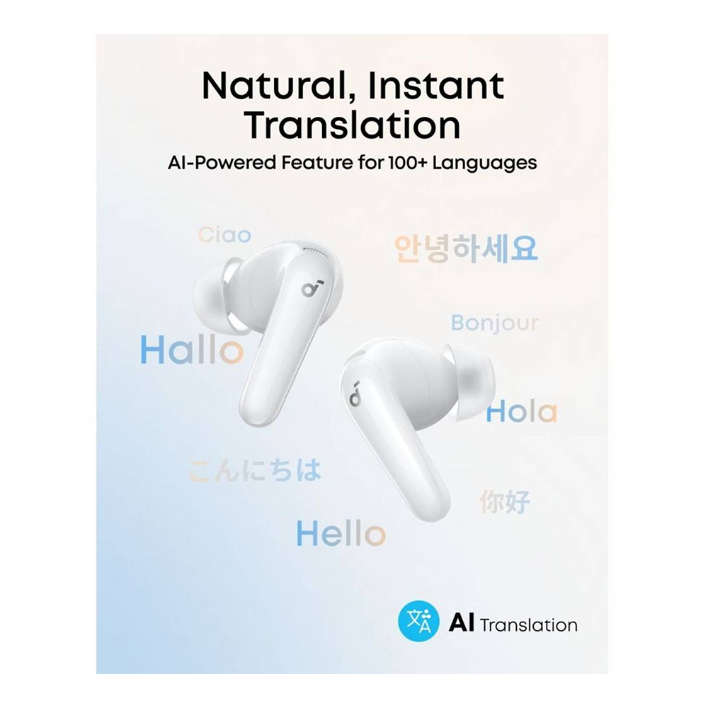 Real-time two-way translation for over 100 languages via the Soundcore app, ideal for travel, meetings, and global communication.