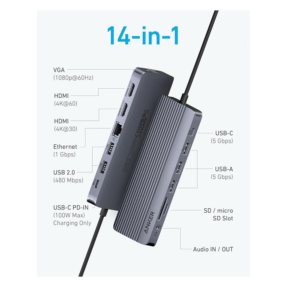 Anker USB-C Hub (14-in-1, Triple Display) , Triple Display, Endless Potential