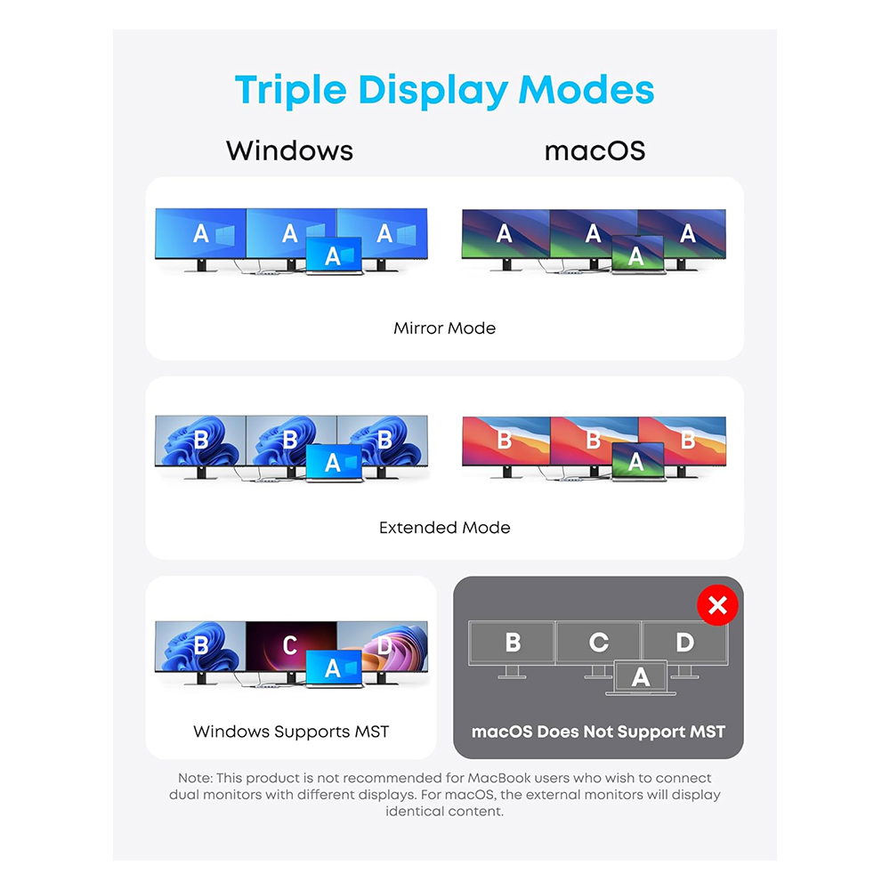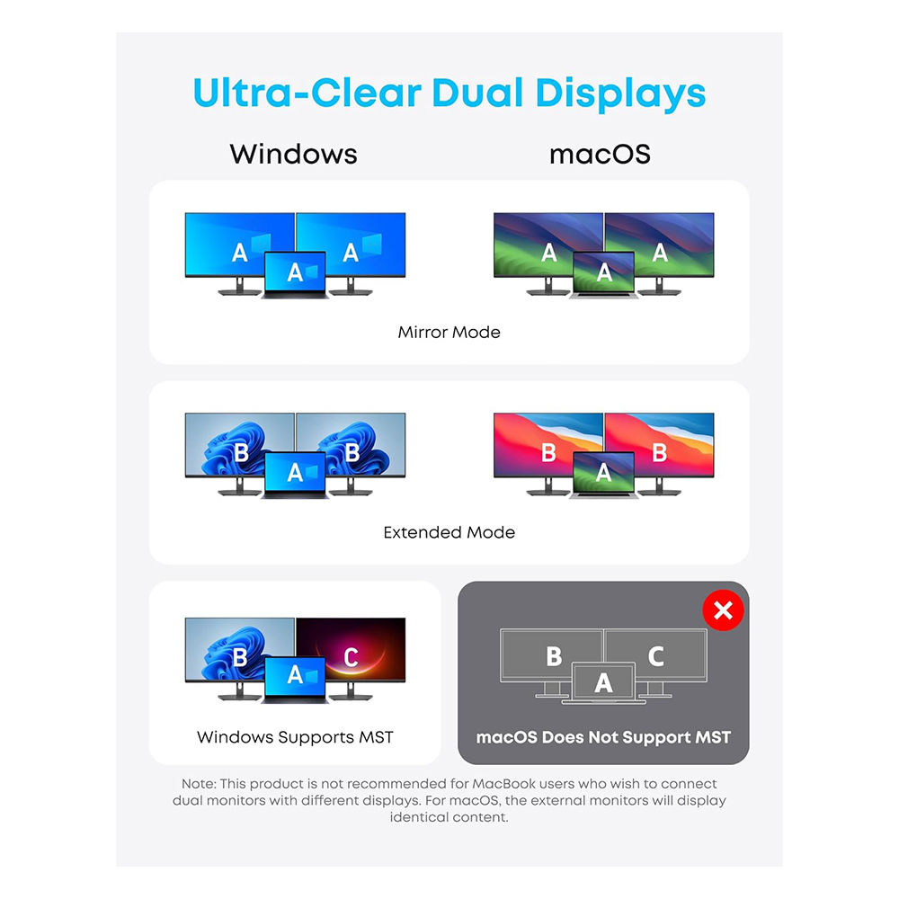 5. This hub does not support multi-display extended mode on macOS.