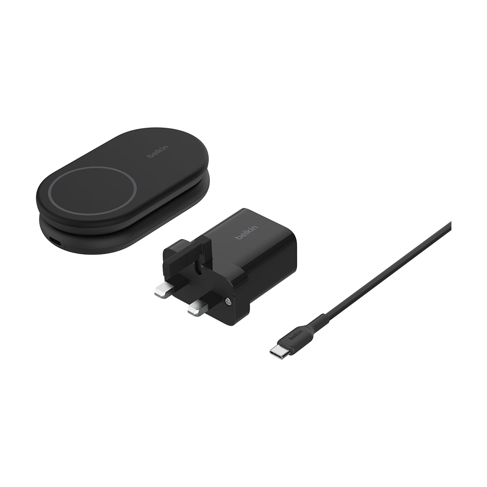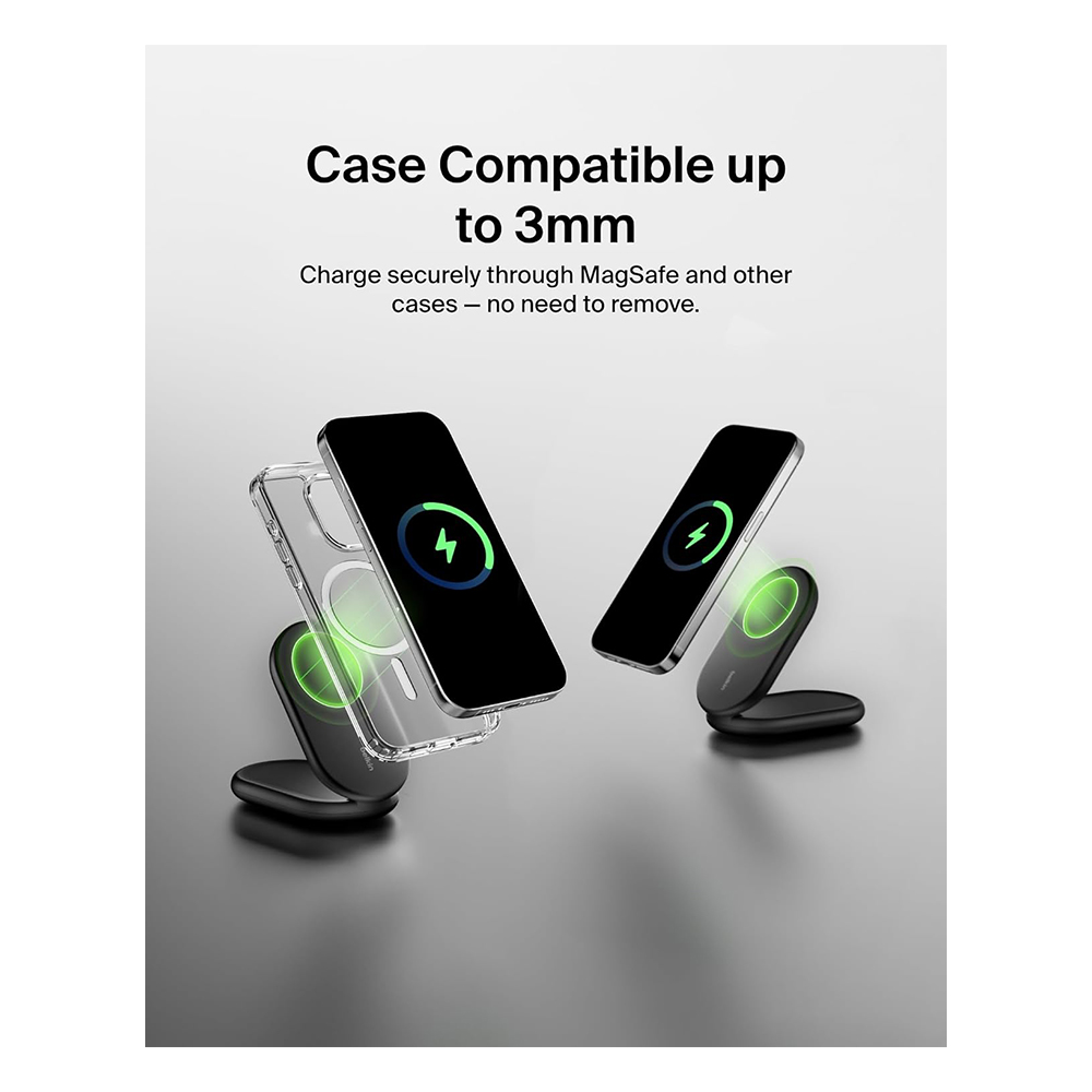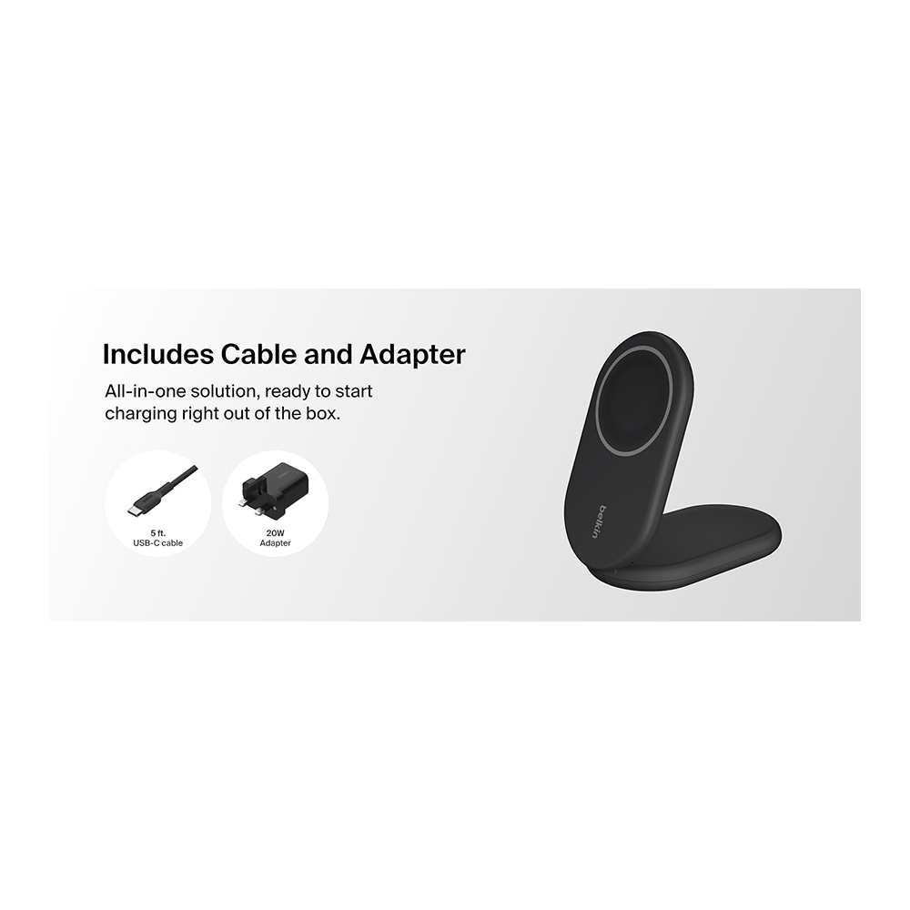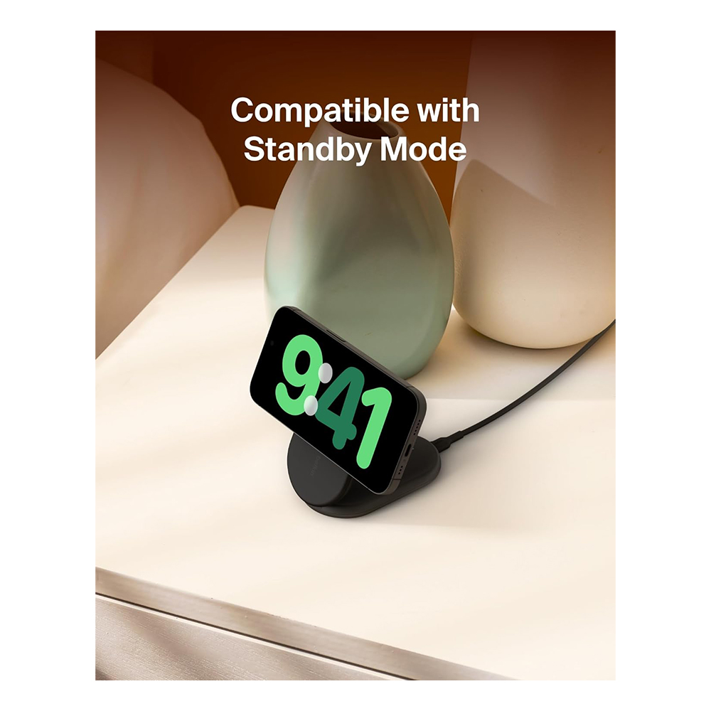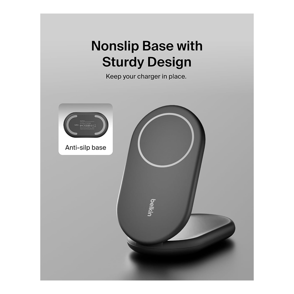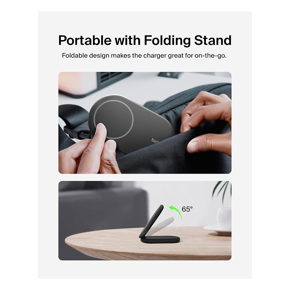 Belkin BoostCharge MagSafe Charger | Magnetic Foldable Wireless Charging Stand 15W | MagSafe-Compatible Portable Fast Charger for Qi2 Certified | iPhone 17, Air, Apple Watch, Pixelsnap, Standy Mode Ready | PSU Included| Non-Slip Base|