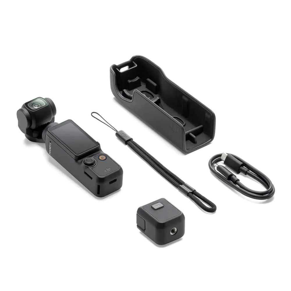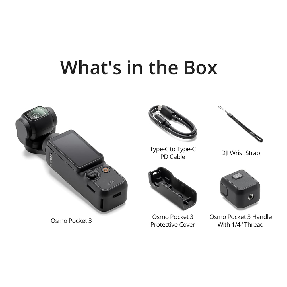 “Overview: Whether traveling, enjoying an afternoon in the park with family, or vlogging your daily life, capture stunningly smooth footage on the move with Osmo Pocket 3. With a 1-inch CMOS sensor, 3-axis mechanical stabilization, D-Log M, and 10-bit color depth, you can shoot gorgeous memories in the palm of your hand. Osmo Pocket 3 comes in two purchasing options: -Osmo Pocket 3 is the standard option; it includes the pocket gimbal, protective cover, wrist strap, handle with 1/4″” thread, and more to help you get started quickly. -Osmo Pocket 3 Creator Combo allows users to level up their audio and filming capabilities. It includes all items in the Osmo Pocket 3 starting set and additional items such as the DJI Mic 2 Transmitter, carrying bag, and battery handle. ”