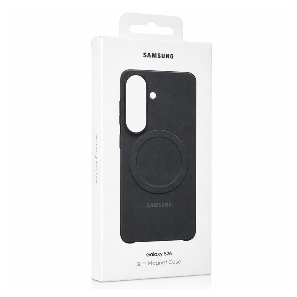 The Galaxy S26 Slim Magnet Case | built-in magnets that help align your device for fast wireless charging | It also supports a stable hold with compatible magnetic accessories | including magnet grips | magnetic battery packs | wireless chargers | ring holders | wallets | and car mounts|