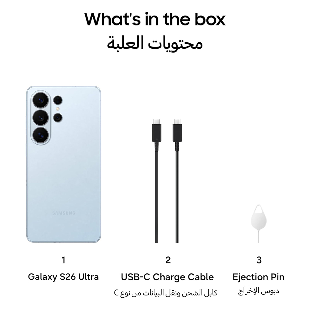 Smartphone | Data Cable | Ejection Pin Galaxy S26 Ultra does not include travel adapter.