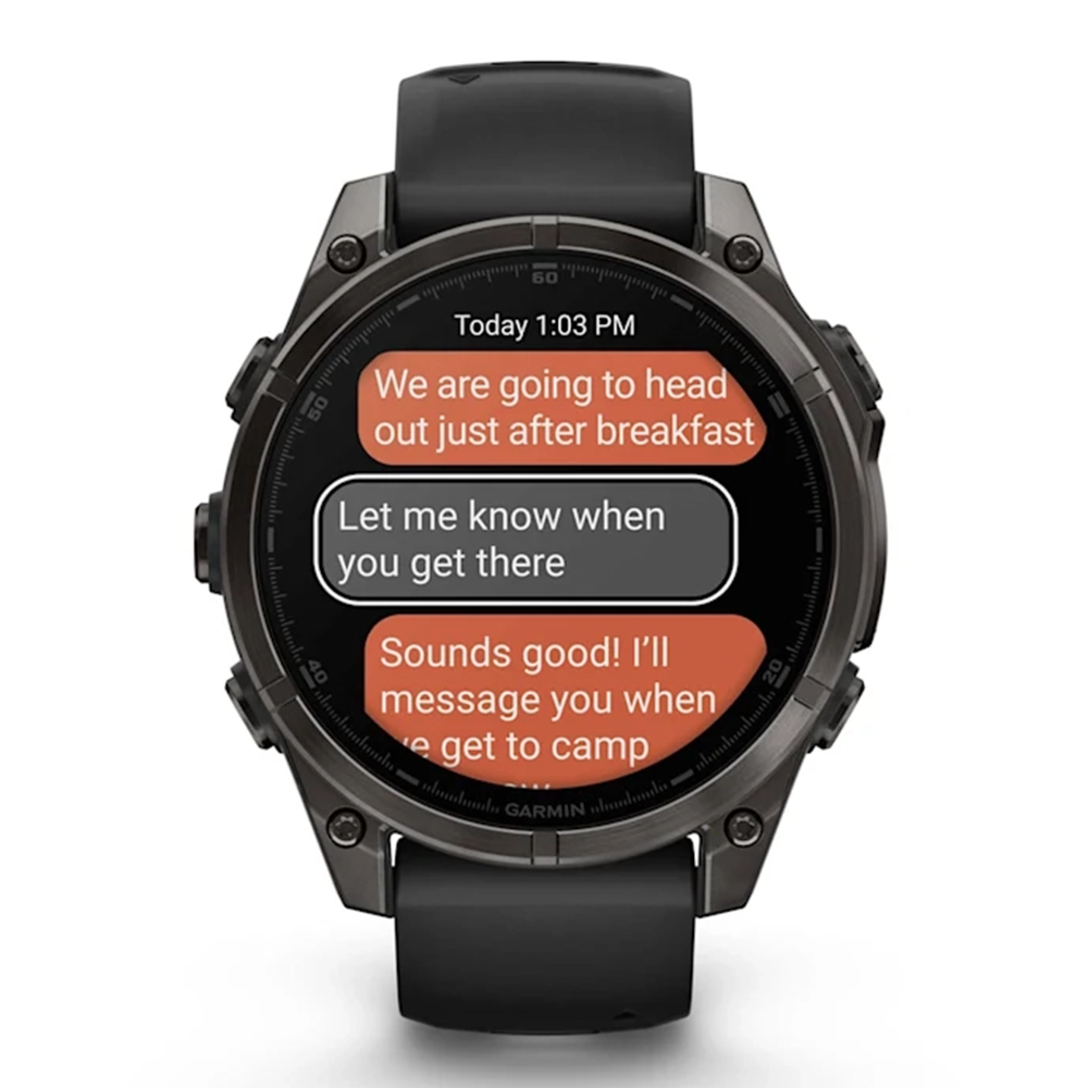 Make and take phone calls from your sports watch when it’s paired to your smartphone. Plus, control watch functions with off-grid voice commands — or use your smartphone’s voice assistant to respond to text messages and more.