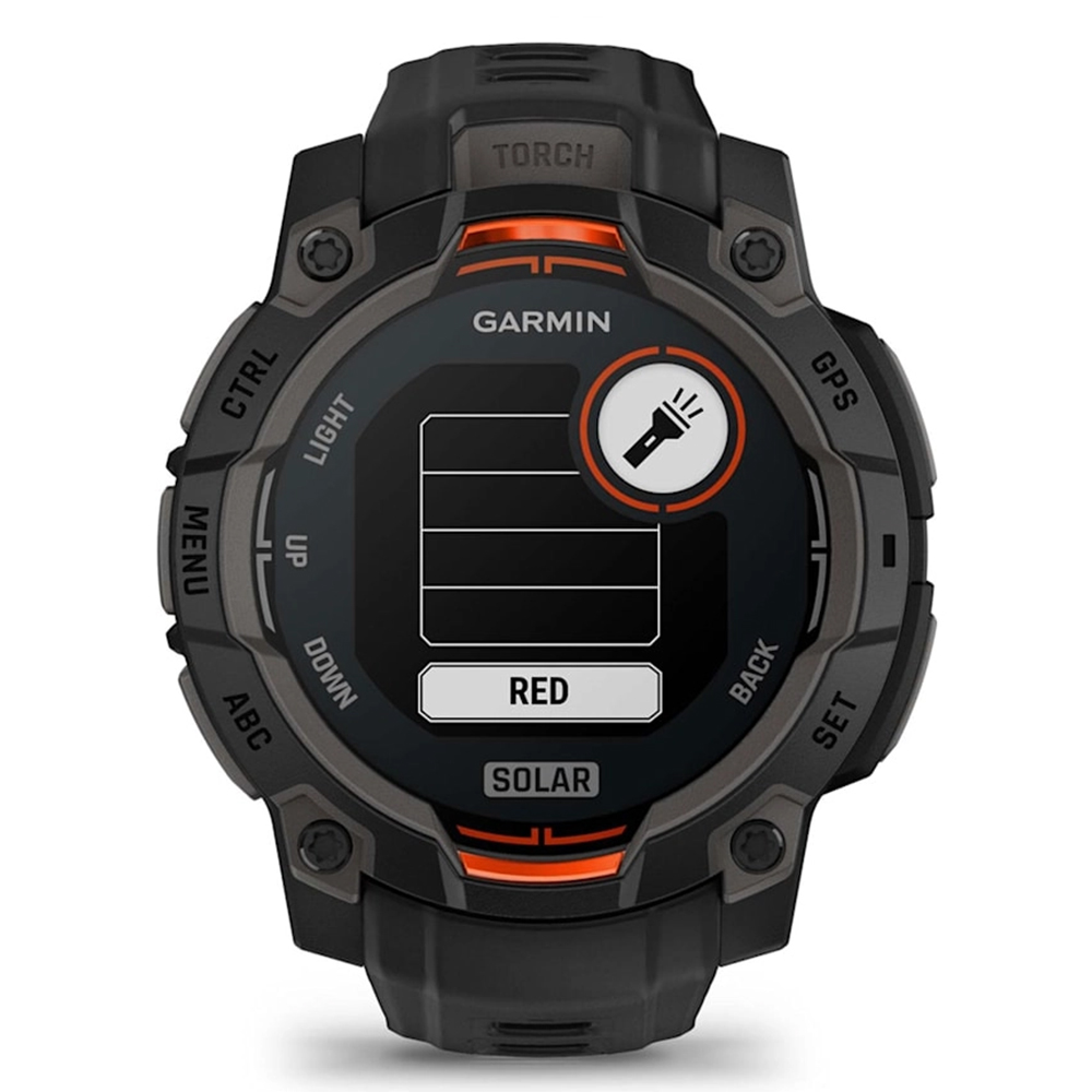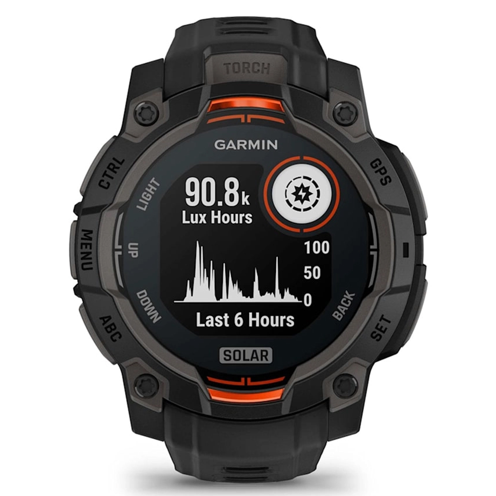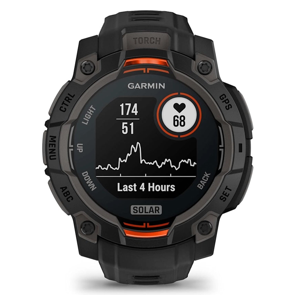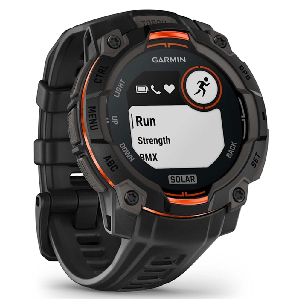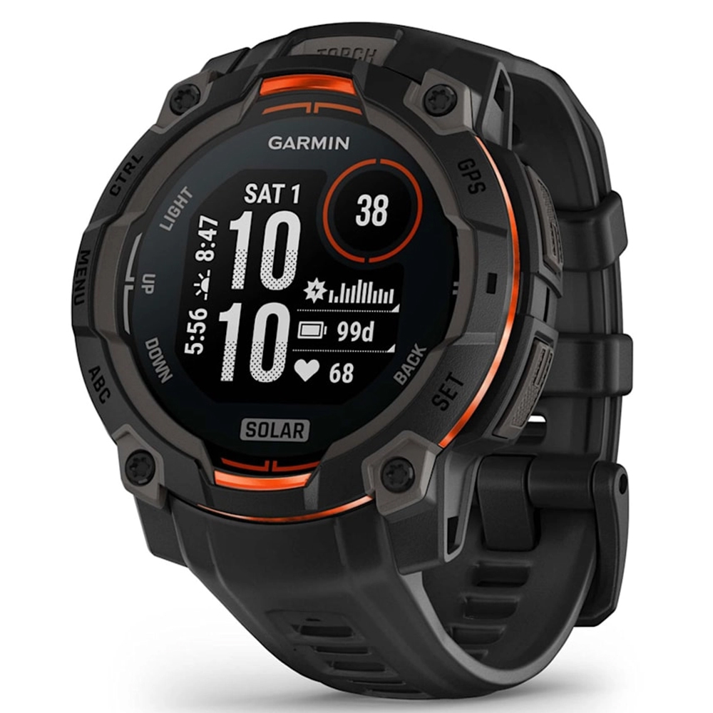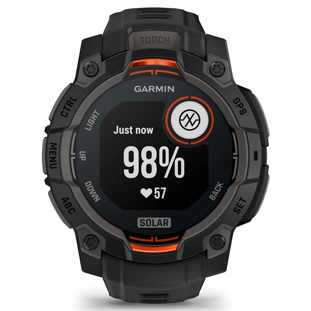 High-Strength Case: Constructed with a 45 mm fiber-reinforced polymer case and a metal-reinforced bezel, the Instinct 3 Solar is built to withstand demanding environments.