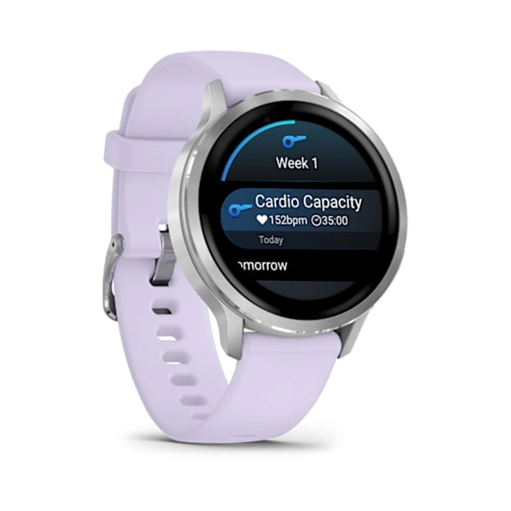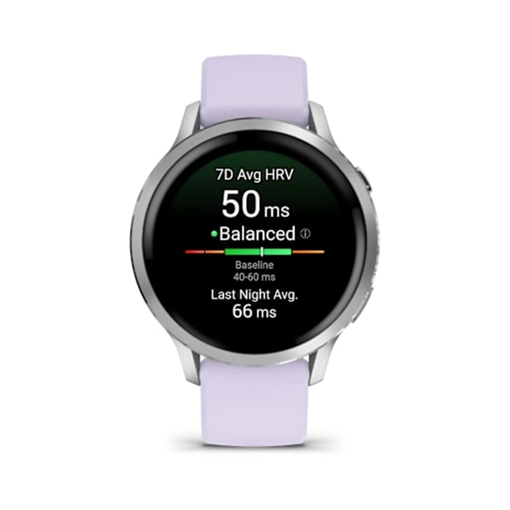 GARMIN Venu® 4 – 41 mm | Silver with Periwinkle Silicone Band | Up to 10 Days of Battery Life and Bright | Colorful 1.2 Inch Amoled Display | Lightweight 41MM Case with a Metal Design|