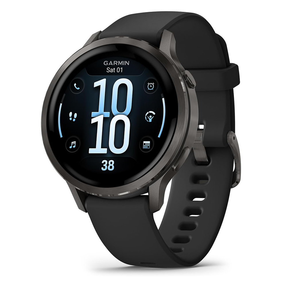 GARMIN Venu® 4 – 41 mm | Slate with Black Silicone Band | Up to 10 Days of Battery Life | Bright Colorful 1.2 Inch Amoled Display | Lightweight 41mm Case with a Metal Design | iOS and Android compatible | Advanced Health and Fitness GPS Smartwatch | Bright and Colorful Display | Built-in Flashlight |