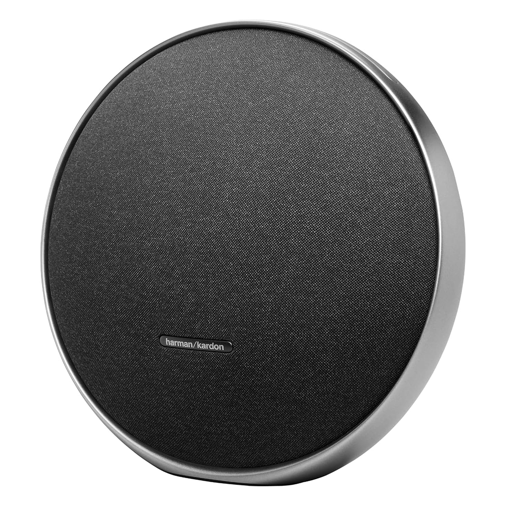The elegant Harman Kardon Onyx Studio 9 portable stereo Bluetooth home speaker delivers immersive, crystal-clear vocals, bright highs, and deep bass in an iconic design. With an integrated aluminum handle and eight hours of playtime, the Onyx Studio 9 is easy to move in and around your home throughout your day.