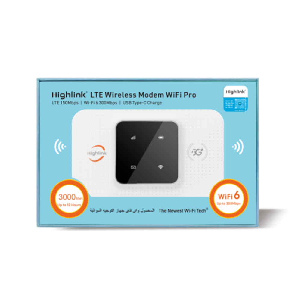 HighLinkย HW52C Pro 4G LTE 150Mbps Mobile Wi-Fi Router With 3000mAh Battery ๏ผPlug And Play, Connects Up 12 Users. Compatible With All SIM Cards