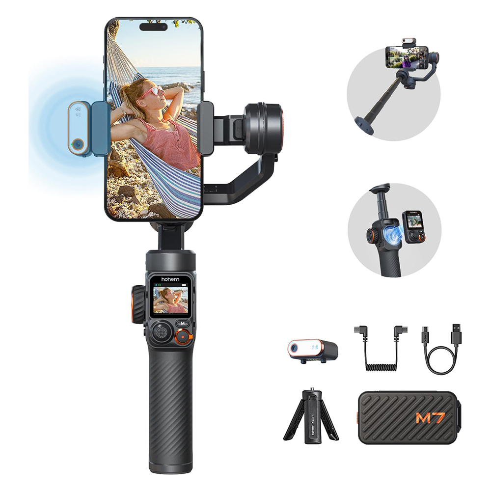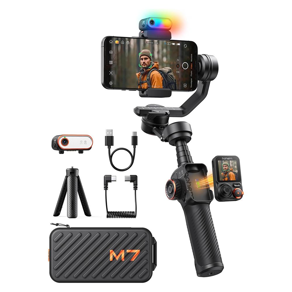 Hohem iSteady M7 Gimbal Stabilizer for Smartphone | Magnetic AI Tracker Fill Light | 1.4″ Full Color Detachable Touchscreen Remote Controller | Built-in Extension Rod | 500g Payload Gimbal Stabilizer for iPhone & Android |