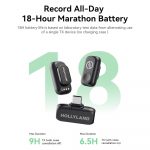 • ใ€Up to 54h Battery Lifeใ€‘ Achieve up to 54h using one transmitter (TX) alternately with the charging caseโ€”ideal for long shooting days without battery anxiety.