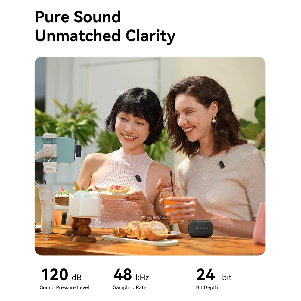 • 48kHz/24-bit Studio-Grade Wireless Microphone Handles sudden 120dB SPL noises without distortion, capturing crisp highs and deep lowsโ€”ideal for vloggers, streamers, and creators using a mini microphone for cinematic audio.
