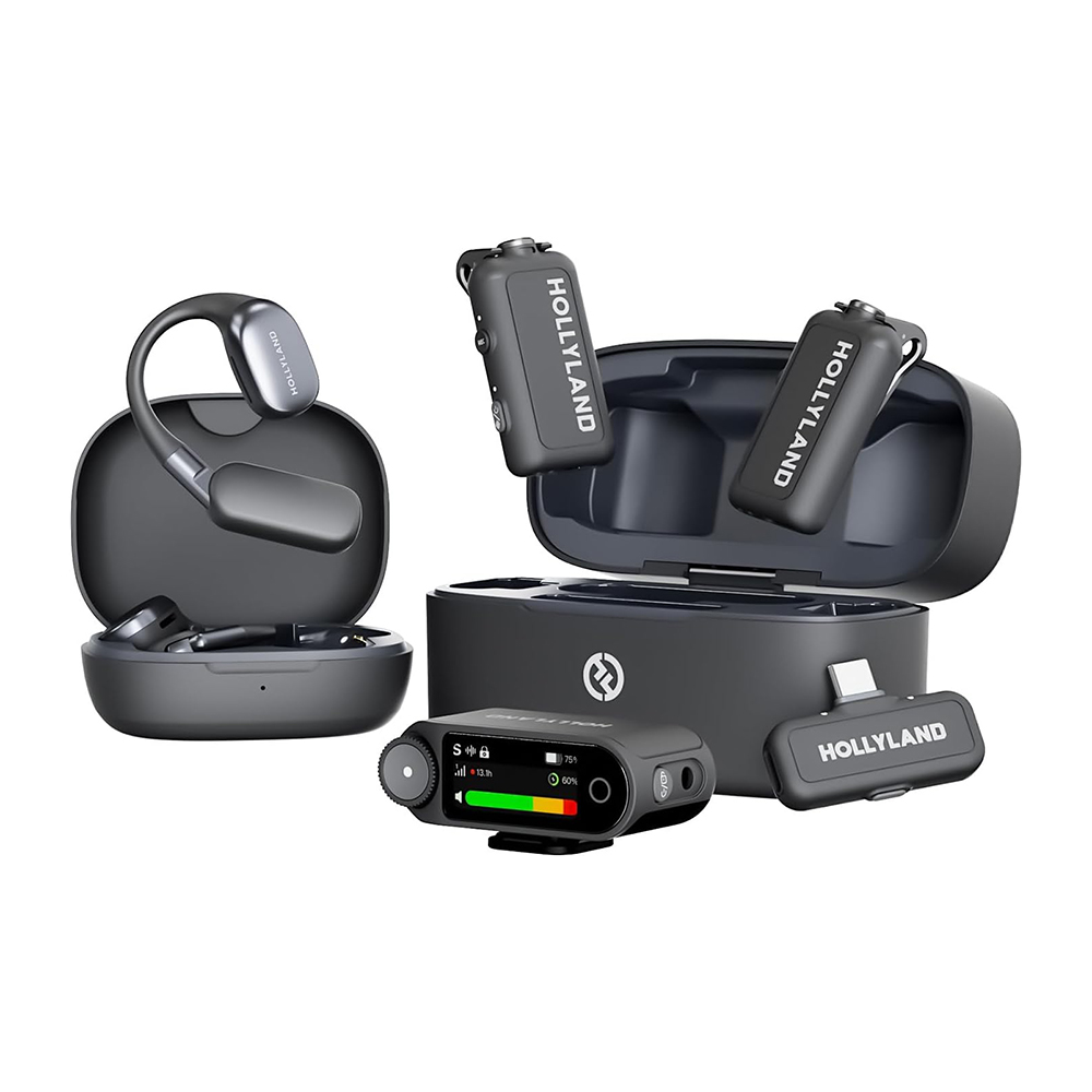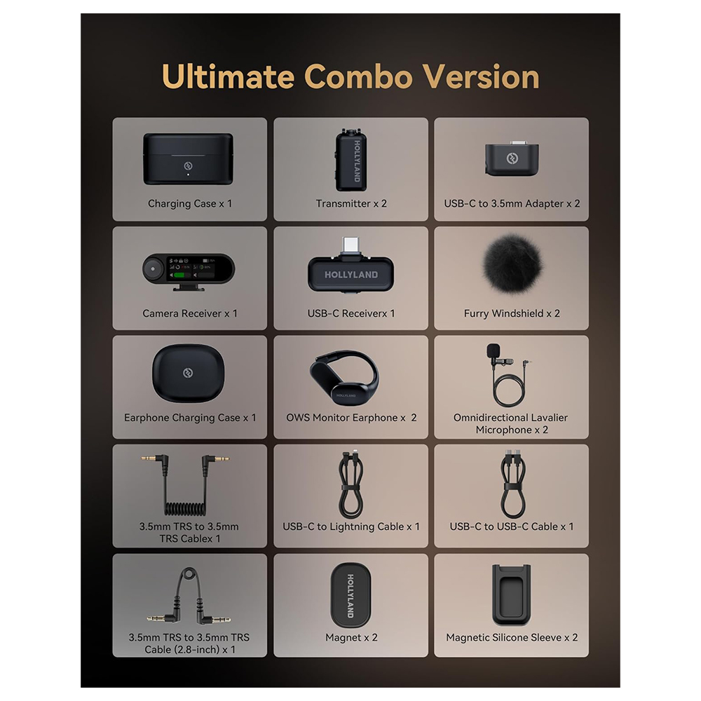 Hollyland LARK MAX 2 Ultimate Combo Wireless Microphone with AI Noise Cancellation | 32-Bit Full-Chain Audio | Wireless Monitoring | for Camera | iPhone & Android | 2TX+2RX+OWS Earphones | Charging Case|