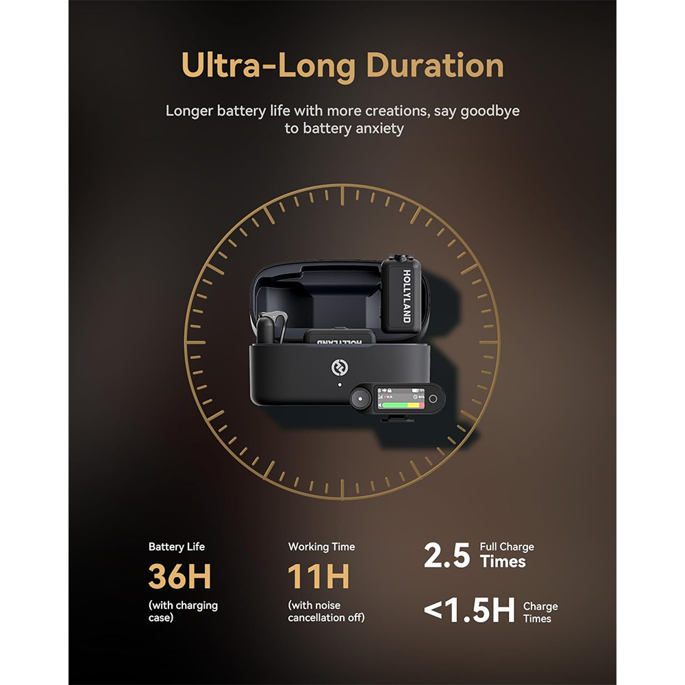 With 36-hour extended battery life, advanced 2.4 GHz frequency hopping, and a wireless range of up to 1115 ft, the LARK MAX 2 guarantees stable, interference-free performance, addressing common issues like short battery life, unstable connections, and poor monitoring. Perfect for live streaming, filmmaking, podcasts, and high-volume recording, it ensures crystal-clear audio, perfect sync, and reliable operation anytime, anywhere.