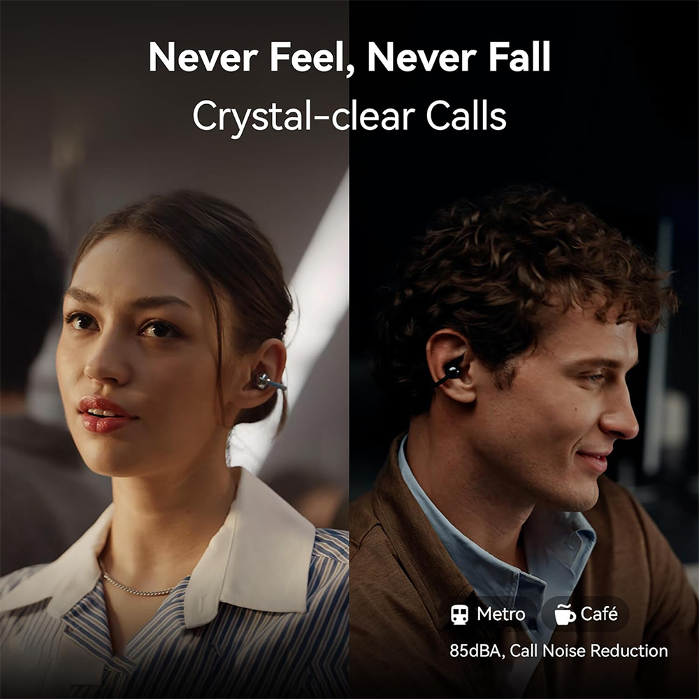 • Dual 10.8โ€ฏmm drivers:ย Powerful sound with boosted loudness and bass for openโ€‘ear earbuds.