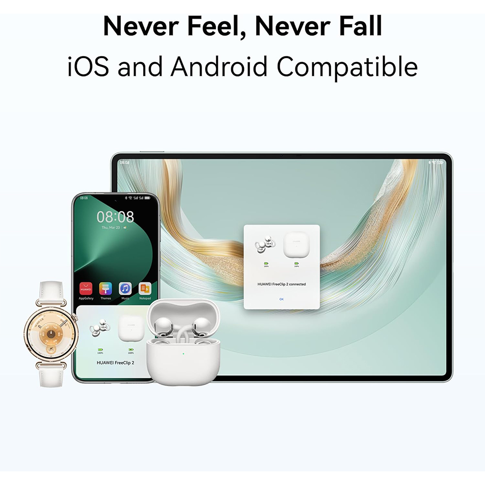 HUAWEI Free Clip 2 Open-Ear Clip-On Earbuds | Airy C-bridge design | Lightweight | 38H Battery | Fast Charge | Dual Driver | IP57 Waterproof & dust proof | Touch & Head-motion control | iOS & Android |