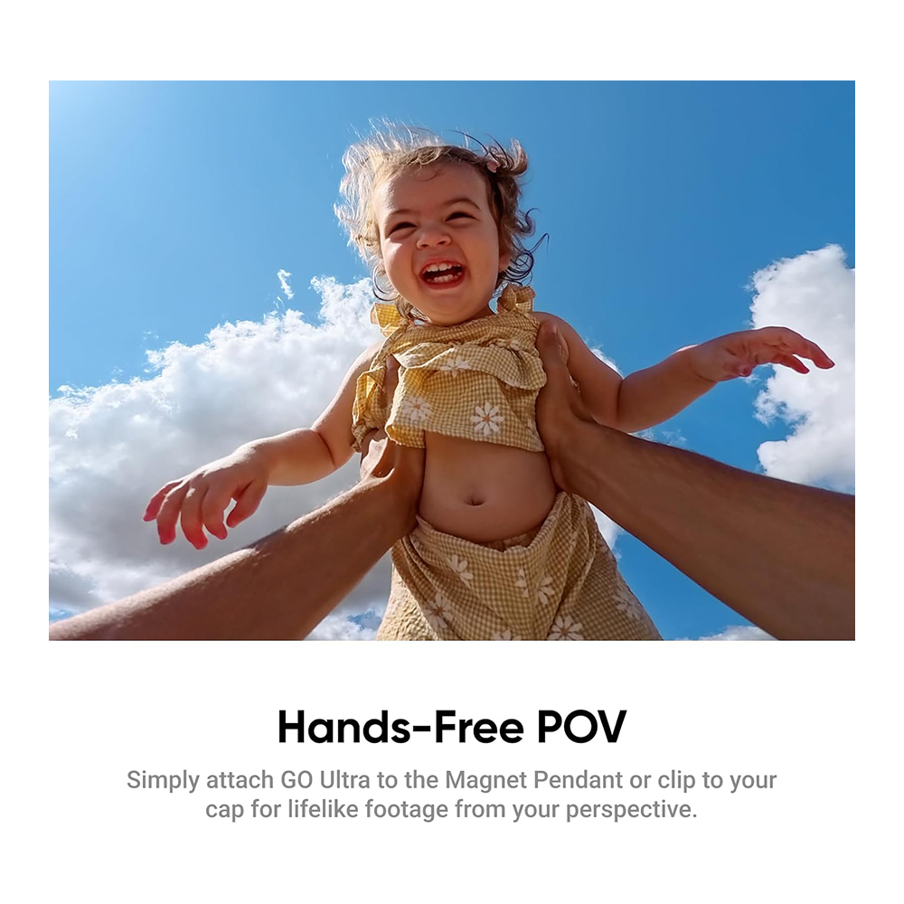 Get your POV effortlessly with the adjustable Magnet Pendant or use the Magnetic Easy Clip for your true eye-line. See the world, not your screen, and capture fully immersive footage.