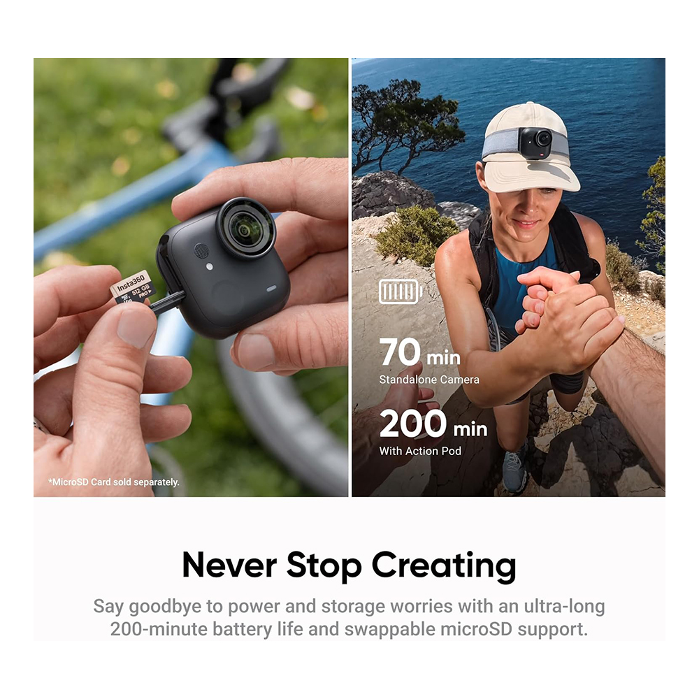 GO Ultra offers complete artistic freedom with its compact 53g body. Take it wherever you go, mount it wherever you like, and get shots no other cam can get.