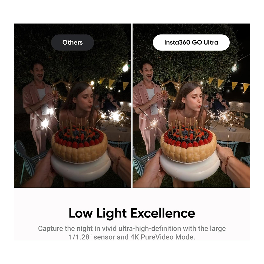 GO Ultra is the first Insta360 camera equipped with an Ambient Light Sensor. This innovation accurately detects the surrounding light and performs real-time color calibration for more authentic visuals. The sensor also eliminates flickering in low light to deliver cleaner shots.