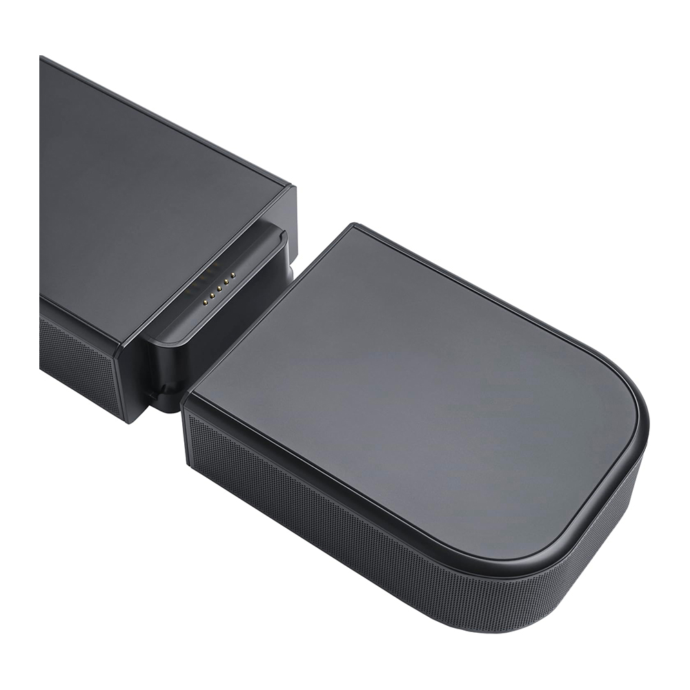 It’s never been easier to jump into true surround sound. No extra wires. No power connections. Just lift the detachable surround speakers off the soundbar—you can do it with just one hand—and place them behind you in the room for true surround sound. It’s that simple. Whether you’re binge-watching your new favorite show or hosting a movie night, the speakers’ long-lasting batteries mean you’ll enjoy immersive, cinematic surround sound for hours. When you’re done, simply place them back on the soundbar to charge overnight.