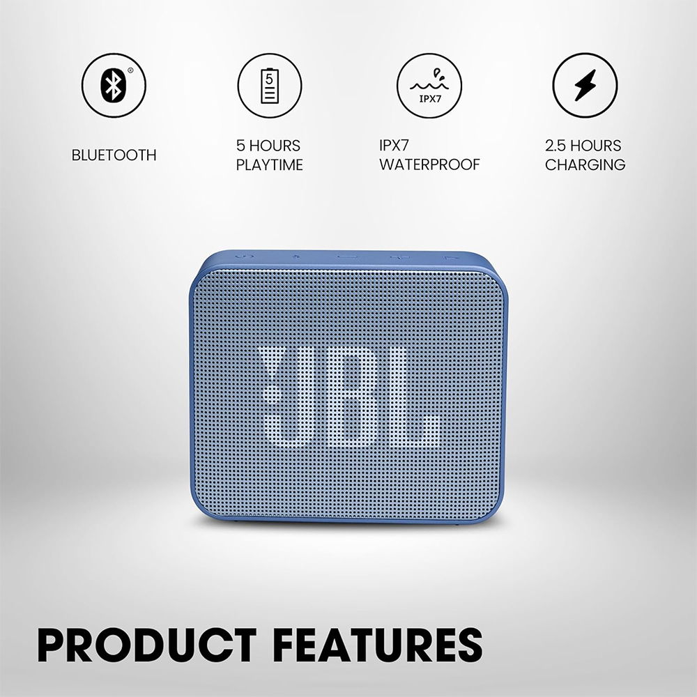 The JBL Go Essential is an ultra-compact portable Bluetooth speaker. Stream music via Bluetooth for up to 5 hours of JBL Original Pro Sound. Make a splash with its IPX7 waterproof design. Available in 3 vibrant colors, Go Essential is the perfect speaker to take your music everywhere.