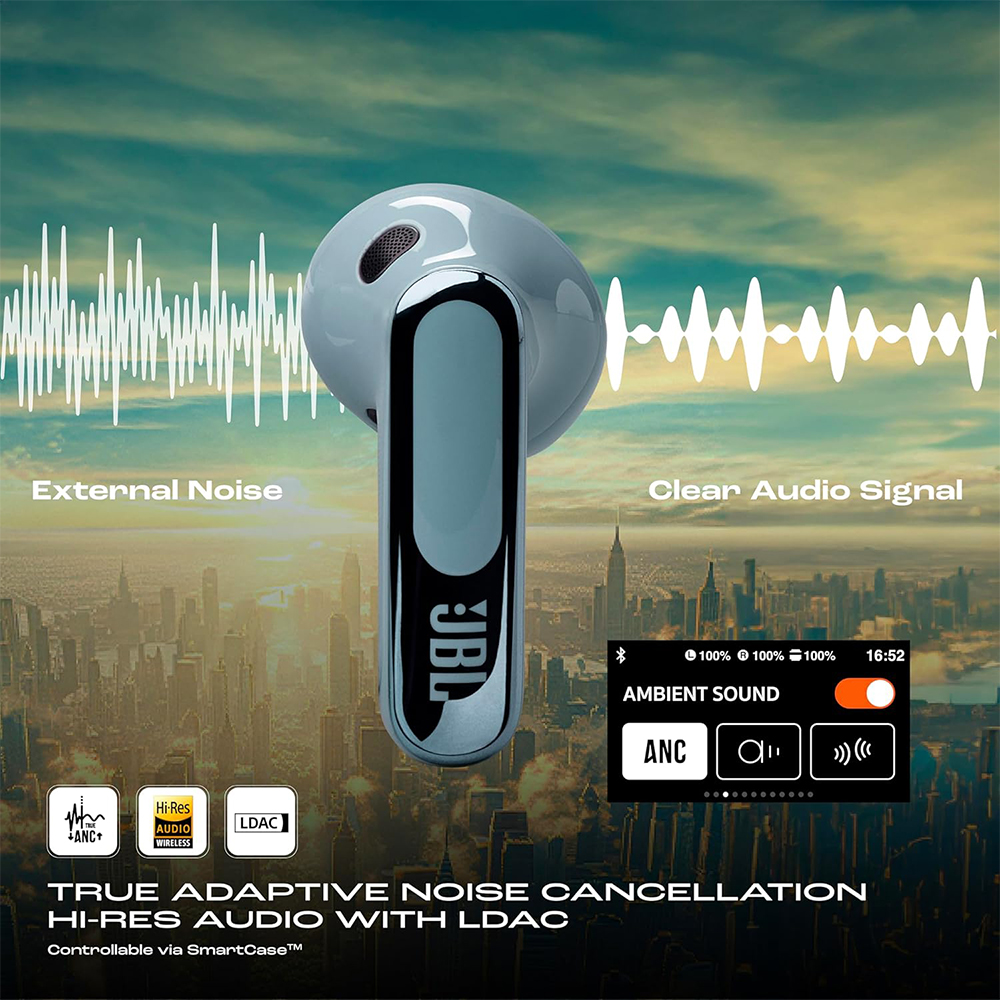 JBL New Launch Live Flex 3 | Hi-Res Audio True ANC TWS | Smart Case with Touch Display | 50H Playtime | Wireless Charging | 6 Mic | Multipoint Connection | Ip55 Proof | in Ear Headphones App | Personi-Fi 3.0 | open-stick design.