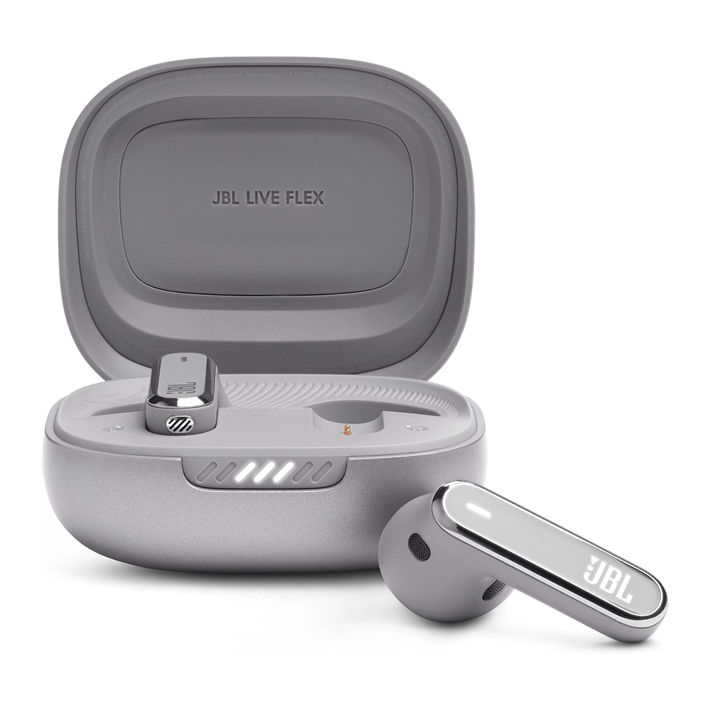 | Included components | โ1 x JBL Live Flex Earbuds, 1 x Product QSG/ Safety Sheet (S / i), 1 x Type-C USB Charging Cable, 1 x Warranty / Warning (W / !), Wireless Charging Case |