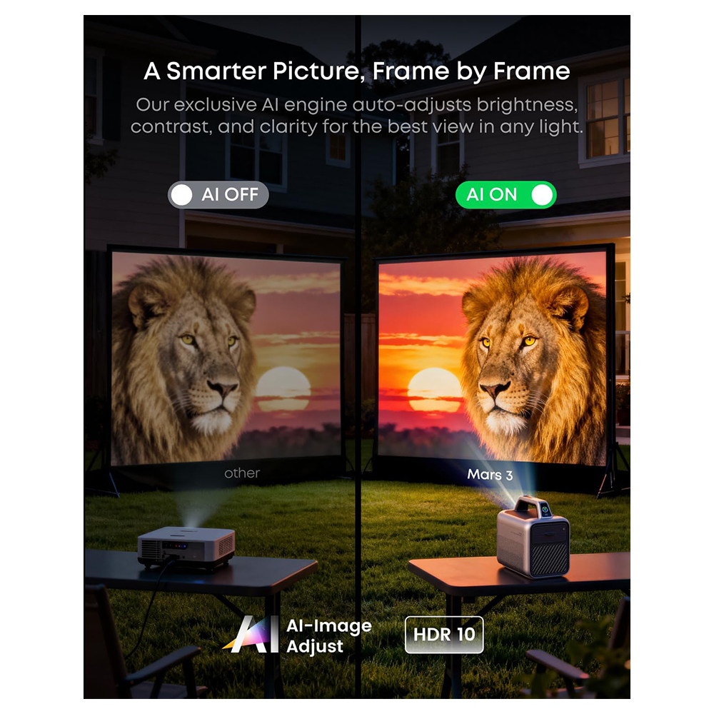 Anker NEBULA Mars 3 Outdoor Portable Projector | 1000 ANSI Lumens | 40W Speaker | AI-Powered Image | Auto-focus | Built-In Battery with 5 Hour Playtime | Keystone Correction | Android TV | 200 Inch Home Theater | support 4K Projector with Wi-Fi and Bluetooth | for Backyard, Office, Business and Camping |