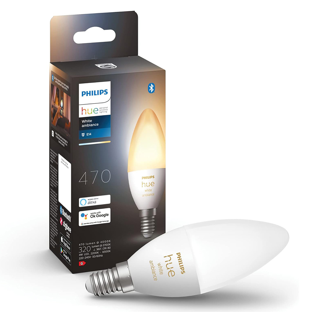 Philips Hue White Smart Candle Extension Bulb | 470 Lumens E14 Small Edison Screw With Bluetooth | Works with Alexa | Google Assistant | Apple HomeKit | Dimmable | All shades of white | Controllable via app | Compatible with Alexa, Echo & Echo Dot | 1-pack|