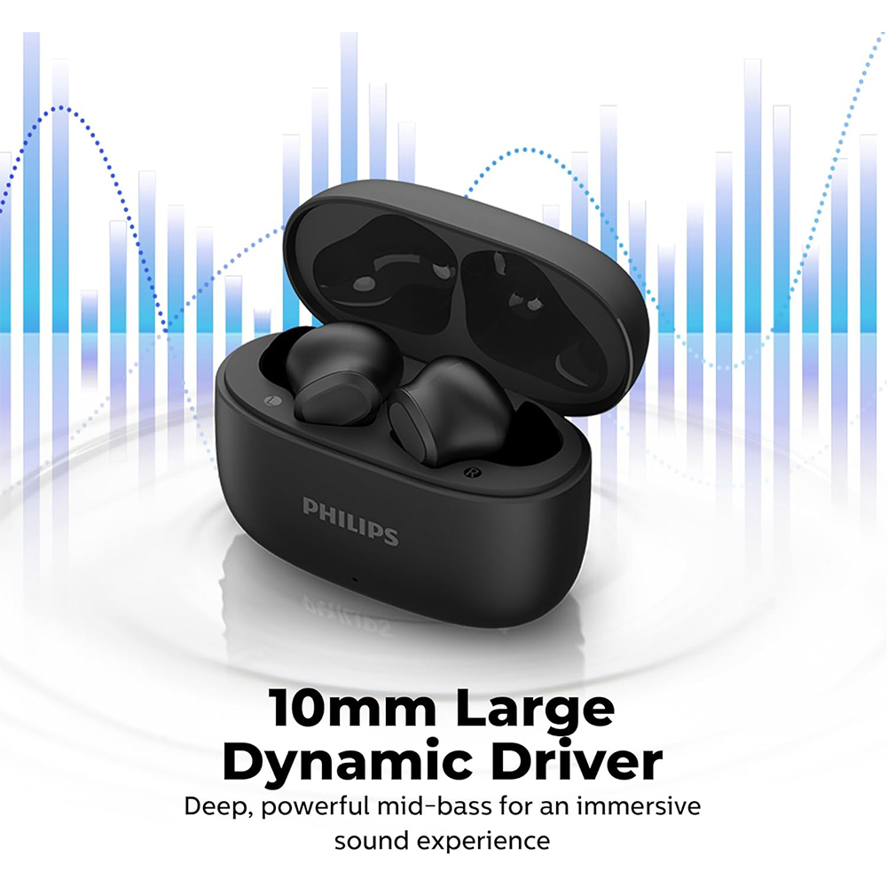 Enjoy clear sound, seamless connectivity, and all-day comfort with the Philips TAT1109 True Wireless Earbuds. Designed for everyday use, these lightweight earbuds deliver powerful audio through 10mm dynamic drivers and offer up to 24 hours of total playtime with a compact charging case.