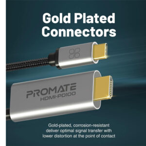 The Promate HDMI-PD100 comes with gold-plated, corrosion-resistant connectors, that deliver optimal signal transfer with lower distortion at the point of contact. The gold-plated Connector also minimizes the signal loss and gives you perfect and stable viewing.