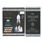 Light Specifications: Input voltage: AC100-240, 50-60Hz. Power consumption: audio 10W light 7W. Power efficiency: more than 75%. Color temperature: 3000K. Audio output power: 25. Audio distortion: 0.5%. Frequency response: 80-20KHz. description: LED Loudspeaker The Qur’an Light is a product of Muslim use, with dual functions (lighting and learning).