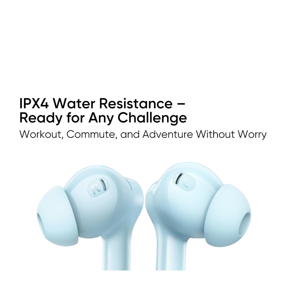 With IPX4 water resistance, the realme Buds T200 Lite is designed to handle sweat and light splashes with ease. Whether you’re working out or caught in light rain, enjoy uninterrupted music without worry.