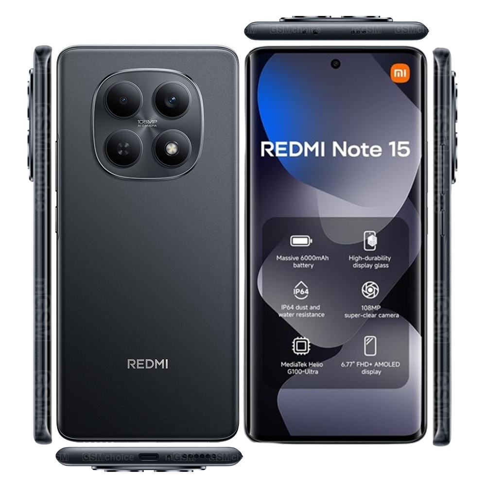 The Redmi Note 15 is built for power and reliability, featuring a massive 6000mAh battery, high-durability display glass, and IP64 dust and water resistance for everyday protection. Capture stunning detail with its 108MP super-clear camera, all powered by the efficient and fast MediaTek Helio G100-Ultra processor.