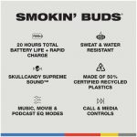 Skullcandy Smokin‘ Buds Wireless In-Ear Headphones | 20 Hours of Autonomy + Rapid Charge | 50% Renewable Plastics | Microphone | Compatible with iPhone Android and Bluetooth Devices | ENC Clear Calls | Music/Movie/Podcast EQ Modes | Touch Controls | Solo Bud Use | IPX4 Water Resistant |